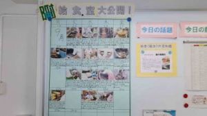 その様子が職員室前の掲示板に写真入りで紹介されています。