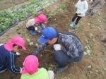 11月5日(水)、附属幼稚園の年長組の園児たちが、高等部の農場でサツマイモ掘りを体験しました。サツマイモは高等部の生徒たちが丹精込めて育てたものです。