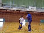 1月23日(金)に大学の保健体育科で本校元校長先生の冨樫先生をお迎えし、中学部で体育の授業を行いました。今回の授業では、「ネット型の運動遊び」として、バドミントンを教えていただきました。