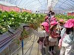 3月12日(木)、高等部園芸班が心を込めて育てているいちごのハウスに、附属幼稚園の年長さんが卒園記念のいちご狩りに来てくれました。
