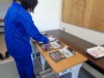 校内実習では、百円均一ショップ「ダイソー」で販売されているまな板の袋詰め作業を行っています。一つひとつの工程を丁寧に確認しながら作業を進める姿に、日々の成長が感じられます。